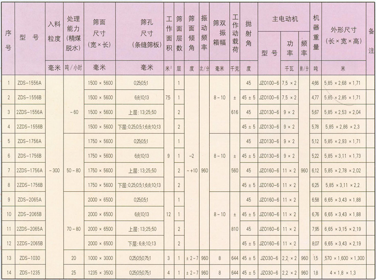 用于中細粒煤的脫水、脫介,也可用于中細粒煤的干式,濕式分級脫泥。也可用于堆比重<l.3的其它物料的脫水、脫泥和分級。