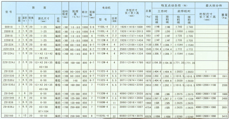 DD、ZD型礦用單軸振動(dòng)篩運(yùn)動(dòng)軌跡為圓,也可稱為圓振動(dòng)篩,型號(hào)分為YA、YK系列,全系列共有十七種規(guī)格,可供礦山、煤炭、冶金、電力、建材、化工等部門對(duì)中等粒度物料進(jìn)行干式分級(jí),對(duì)于選用橡膠篩板的篩分機(jī)對(duì)焦碳物料進(jìn)行分級(jí)效果尤佳。該機(jī)型結(jié)構(gòu)簡單,維修方便,作業(yè)可靠,篩分效率高,透篩性能好。